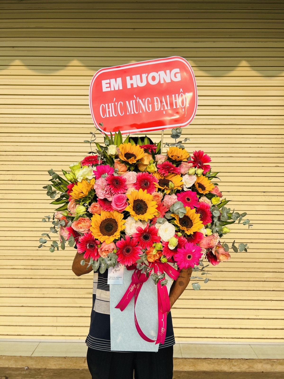 Nguyên liệu hoa : Hoa Hồng, Hoa Hướng Dương, Hoa Đồng Tiền và các phụ kiện hoa lá trang trí khác