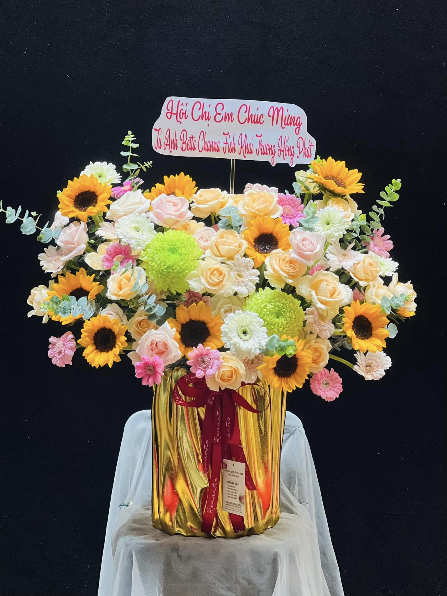 Nguyên liệu Hoa: Hoa Hồng Kem, Hoa Hướng Dương, Chi Đồng Tiền, Cúc Mẫu Đơn và các phụ kiện hoa lá trang trí khác